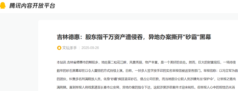 本站讯 吉林省德惠市的朝阳乡,地处第二松花江畔,风景秀丽,物产丰富,是一个美好的去处。然而,巨大的财富背后,一场持续数年的砂石黑幕却在以令人震惊的方式持续上演。日前,一封多人签字按手印的实名举报信被送至各部门。举报信称:以冯立军为首的团伙,纠集多名刑满释放人员,化身“砂霸”疯狂盗采砂石、侵占公司巨款,而当地部分公职人员涉嫌充当“保护伞”,让举报之路充满荆棘。直到举报人将线索递至长春市公安局,异地办案的指令下达,这起涉黑涉恶案件才迎来转机,但举报人心中的担忧仍未消散。